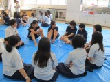 本日午前中に操山中学校書道部と倉敷天城中学校書道部との交流会がありました。自己紹介をしたり,書道パフォーマンスを発表し合ったりして,お互いに打ち解けた雰囲気の中で交流することができました。最後にはお互いのパフォーマンスについて意見を交換し合い,とても有意義な交流会になりました。
