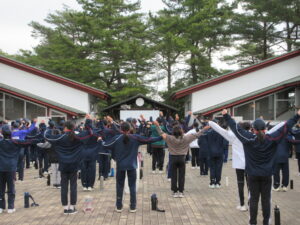 今日も良い天気で105名全員元気でスタートしました!朝のラジオ体操から始まり、ご飯もおかわりをして、準備万端で今日は野外炊事に挑戦…